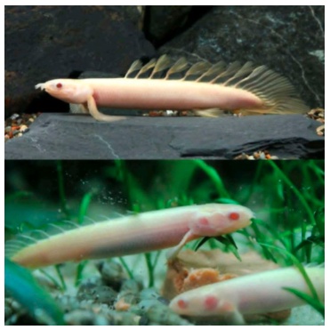 Keunikan lain dari ikan palmas albino adalah punya warna mata merah yang bersih.